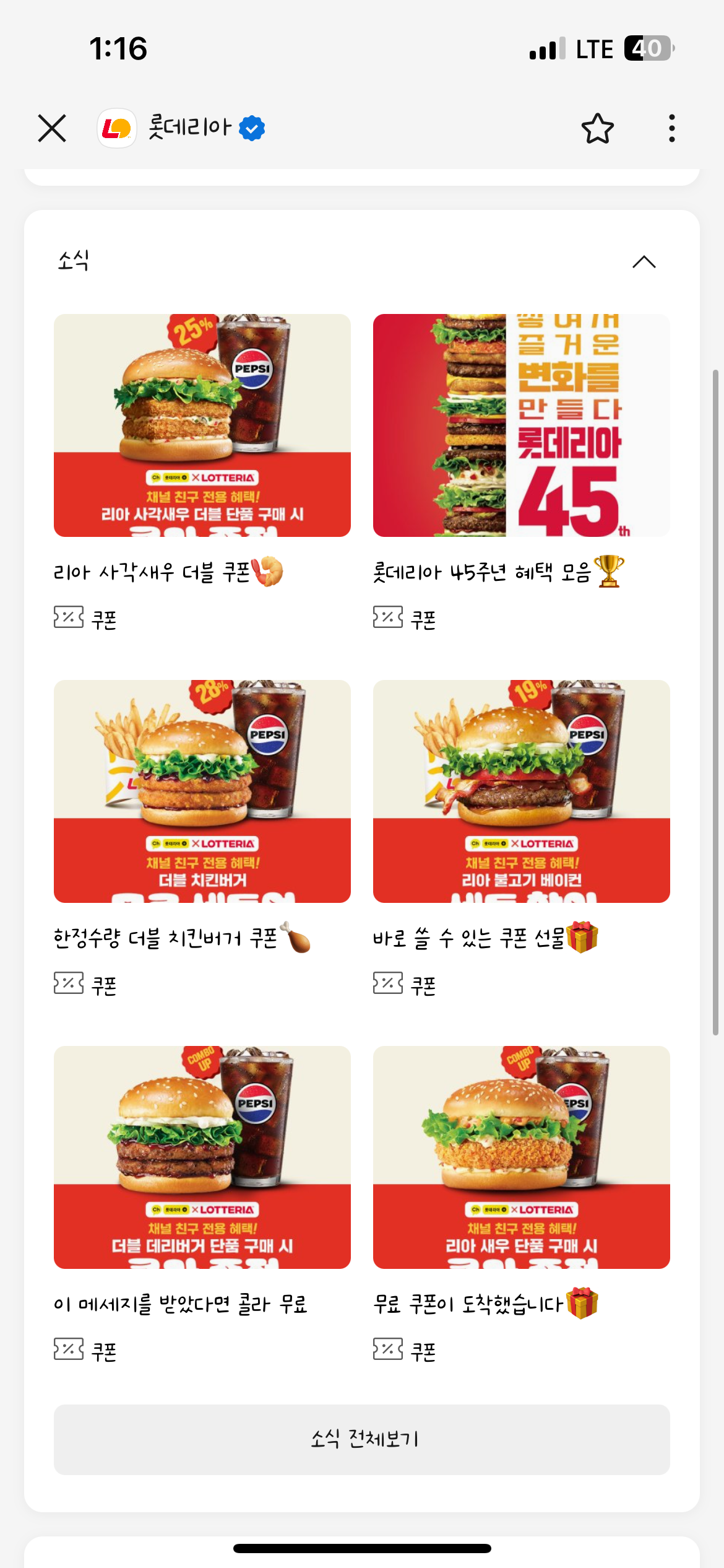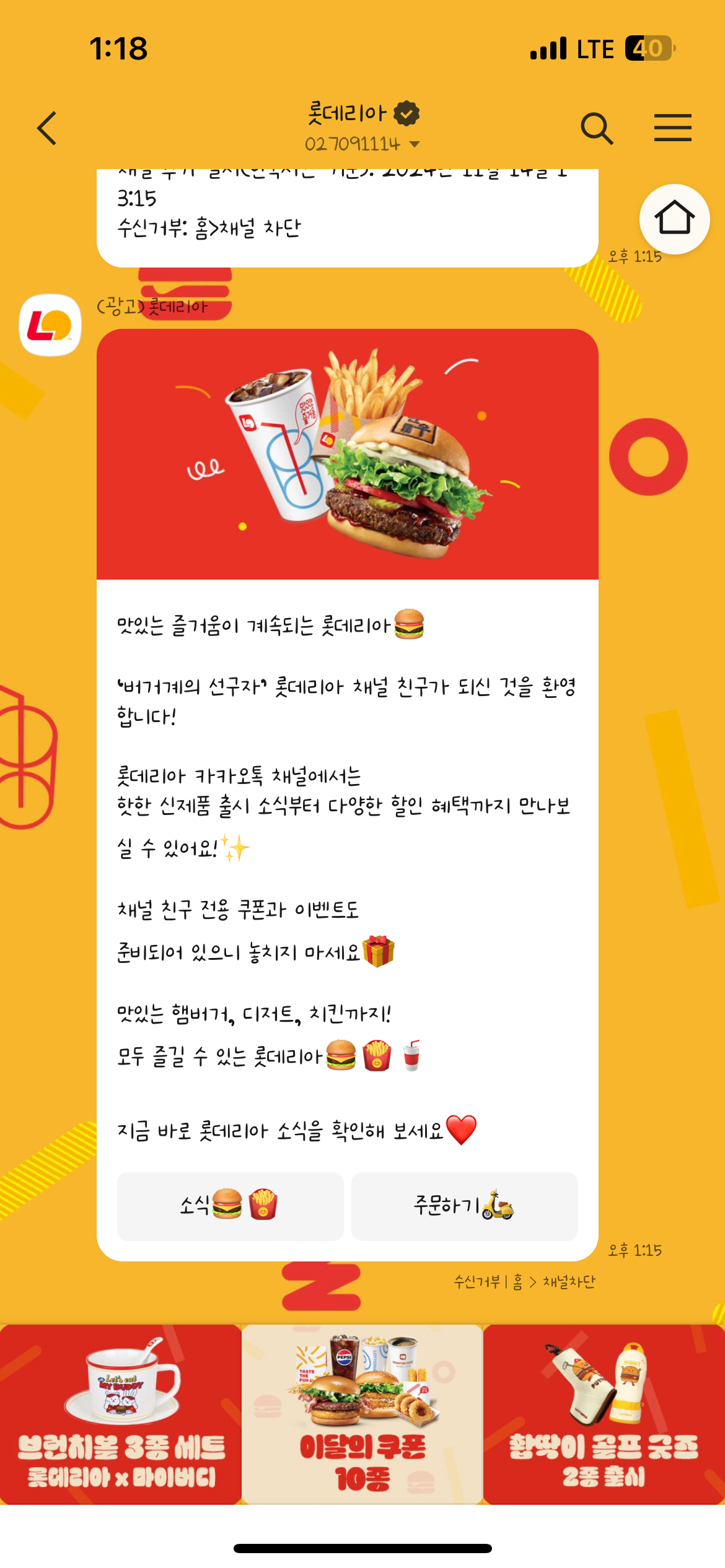 ⬇️⬇️다양한 쿠폰이 많은 롯데리아 카카오채널을 추가해보세요! ⬇️