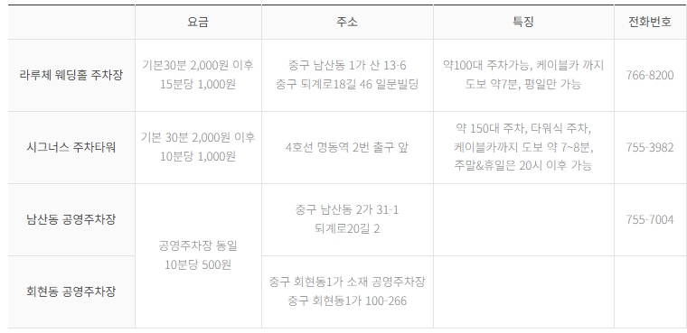 | 케이블카 정보 | 회현동 승강장에서 남산 꼭대기에 있는 예장동 승강장까지 약 600m 이며 케이블카는 평균 초속 3.2m로 운행합니다. |