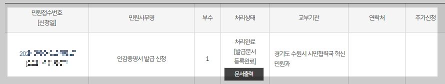✔️최종적으로 발급이 완료되었습니다. 문서출력을 누르면 나의 인감증명서를 확인할 수 있습니다.