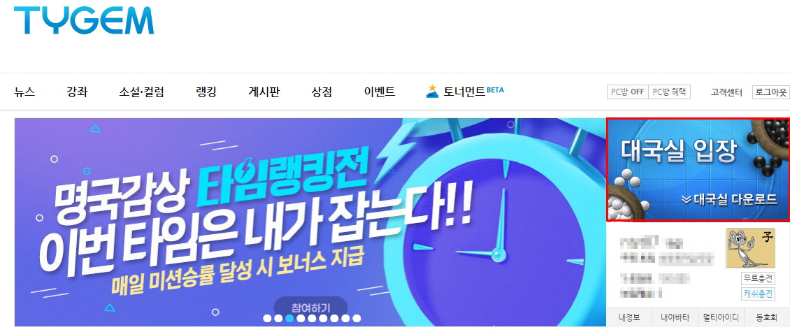 타이젬바둑 홈페이지 바로가기 - PC버전 다운로드